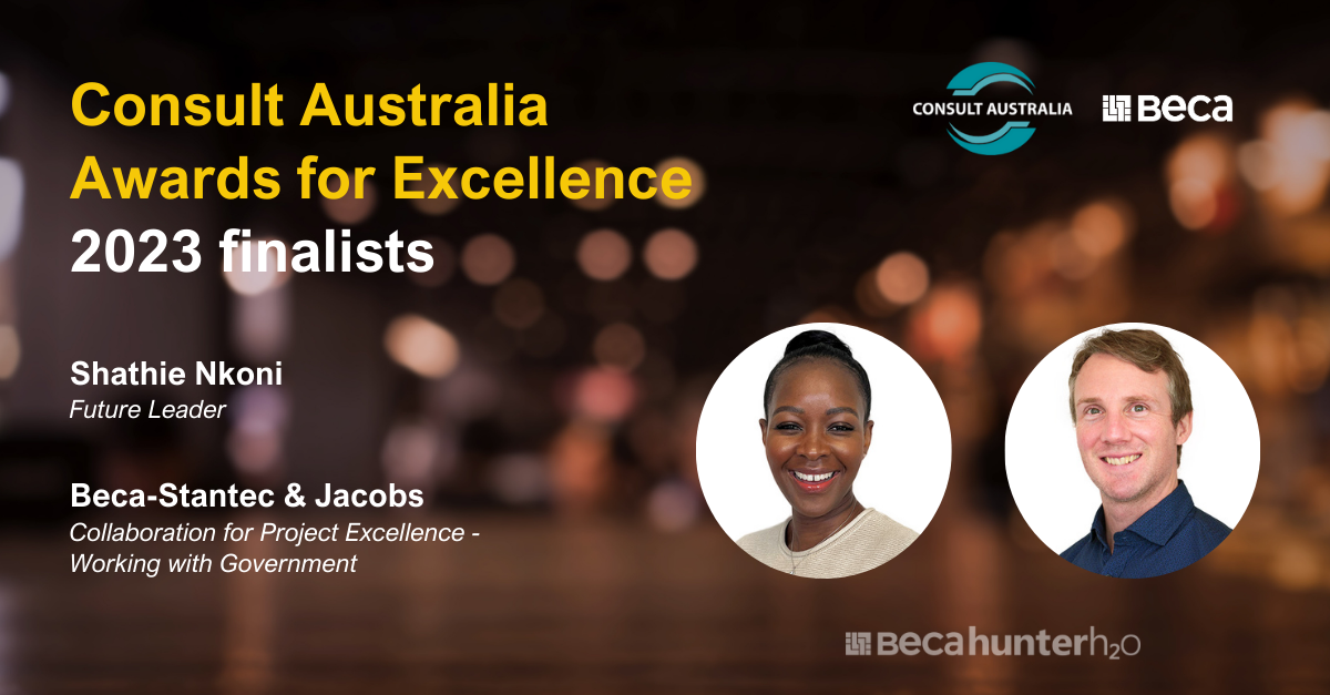 We are honoured to share that Beca’s Shathie Nkoni and our Australian Water business have been named finalists for the prestigious Consult Australia Awards for Excellence 2023-24.