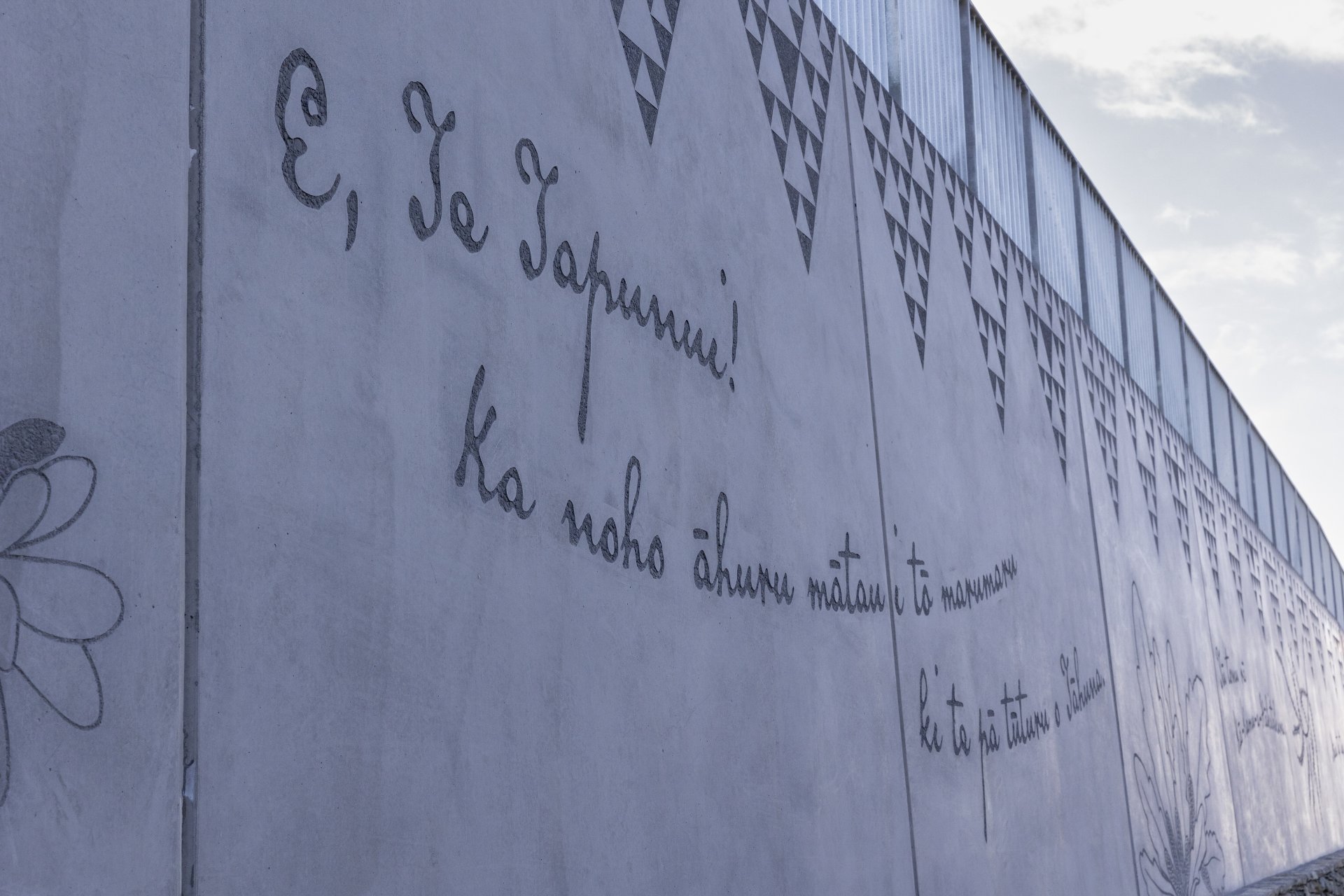 “There is more to the artwork than meets the eye. The waiata on the wall was composed by Marlon Wiliams. He spent a lot of time with the students at Hato Hōhepa a Tāhuna (St Joseph’s School) that’s located at the top of the wall there, and that waiata is now part of the cultural fabric of that school – it’s their official school waiata – so that’s a really longstanding legacy.”