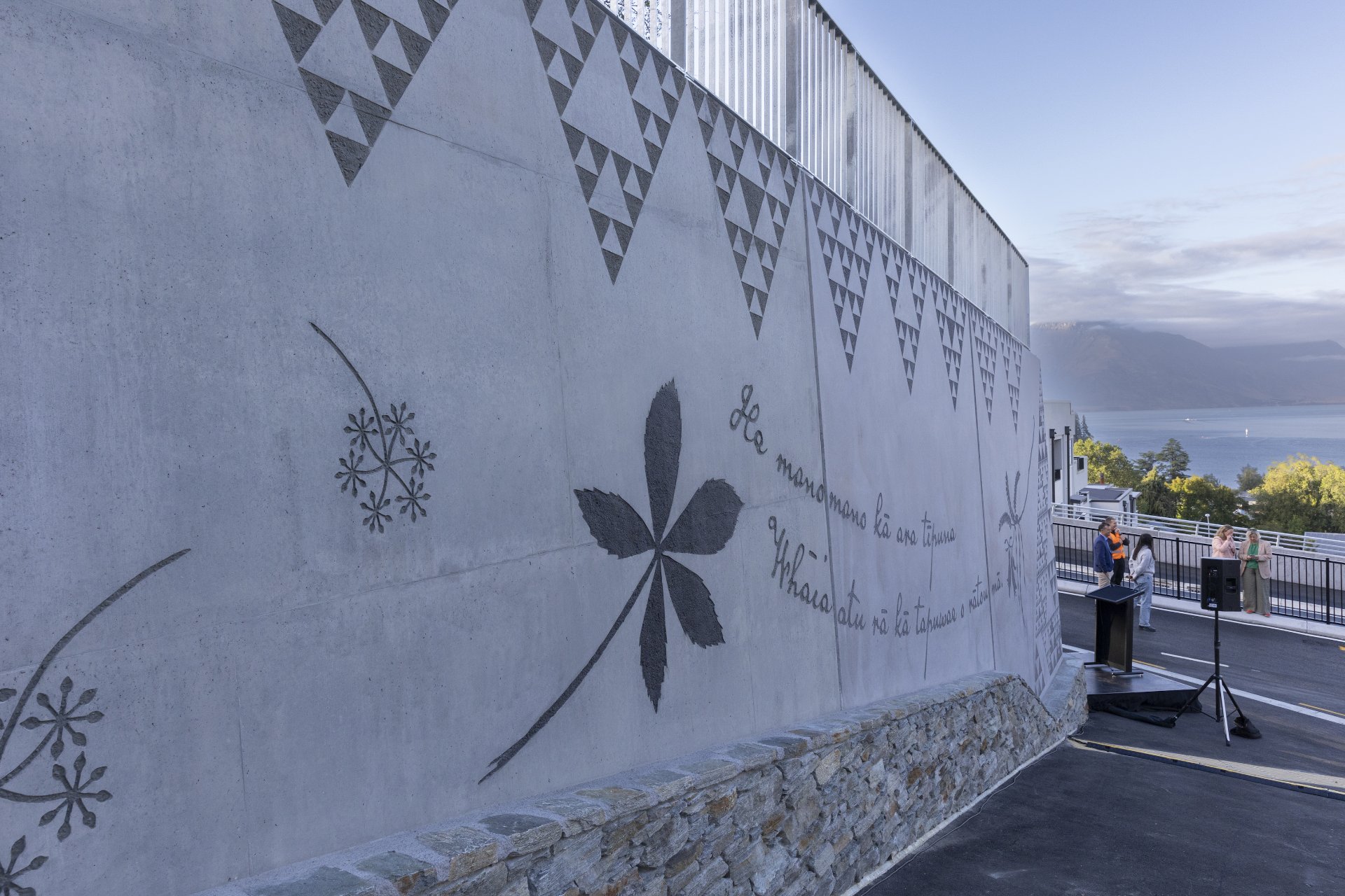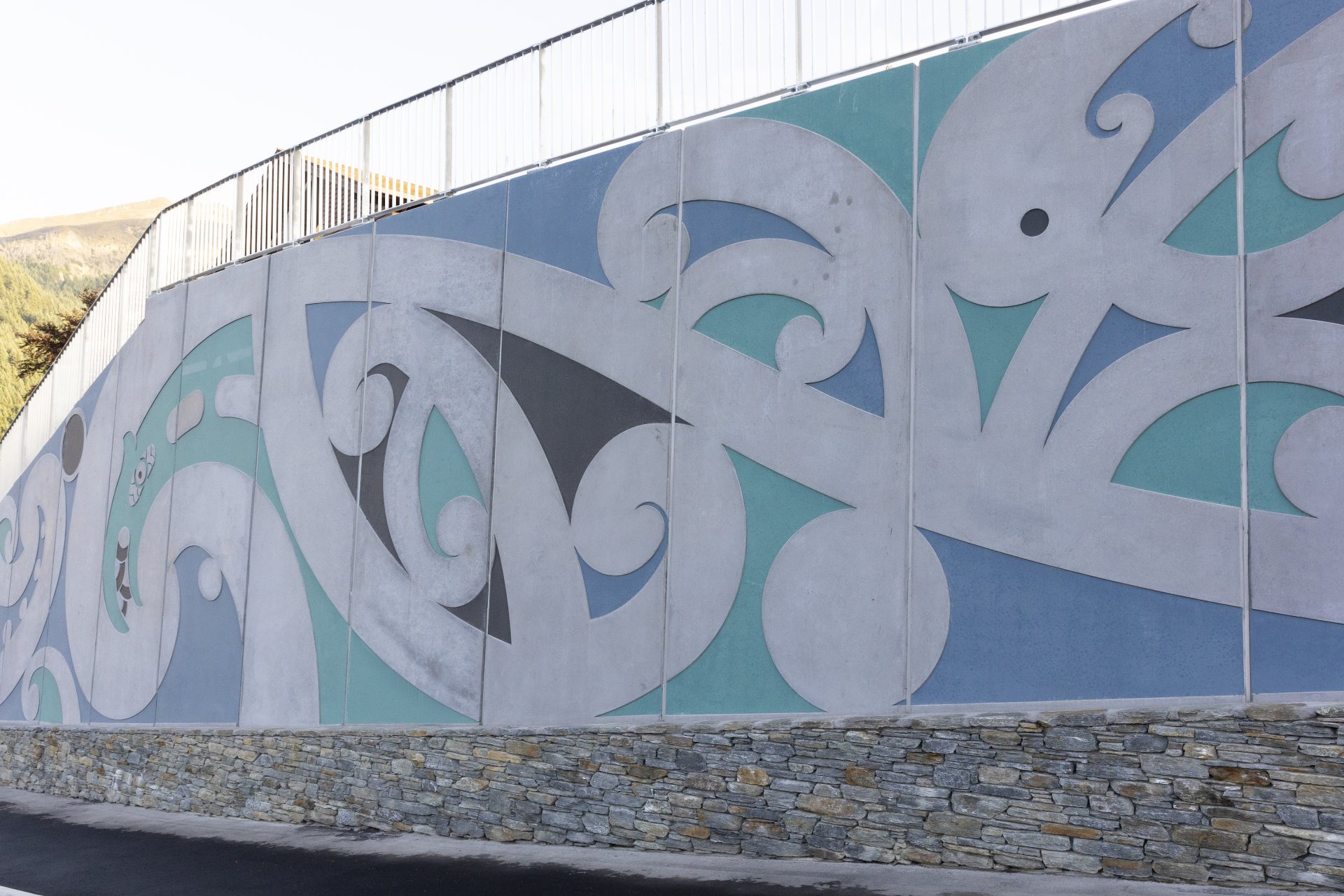 The mahi toi and public artwork created for the arterial road reflects intergenerational connections to the inland area, with a focus on Kai Tāhu whakapapa (genealogical connections) to Hākitekura, the Kāti Māmoe ancestor who famously swam across Lake Whakatipu.