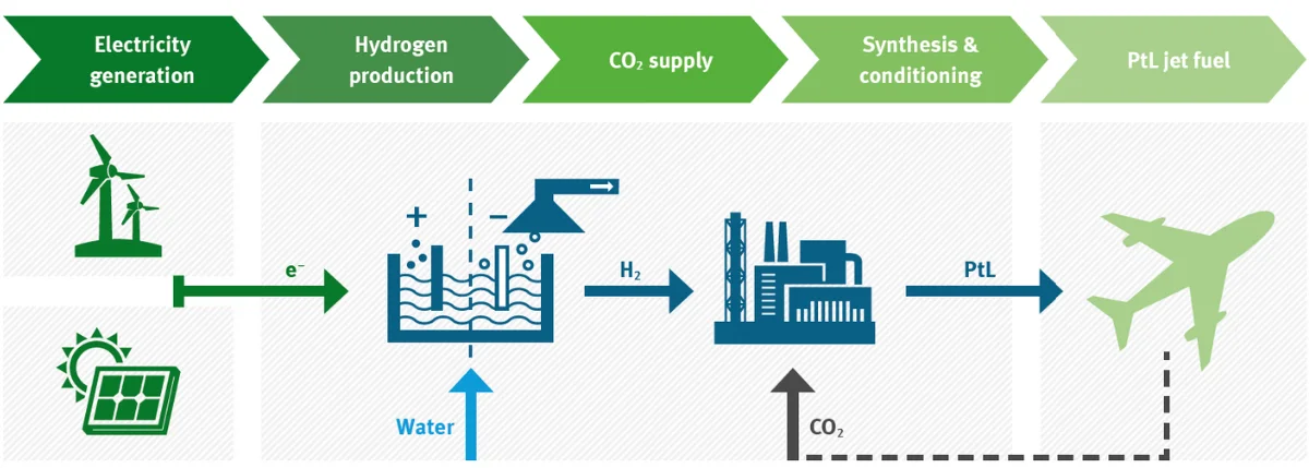 Power-to-Liquids (PtL) is a new and fast-developing way to make SAF. It uses renewable energy to create synthetic fuels, making it a practical, lower-emission alternative to traditional jet fuel. This approach helps the aviation industry cut carbon emissions and move toward a cleaner substitute to traditional jet fuels.