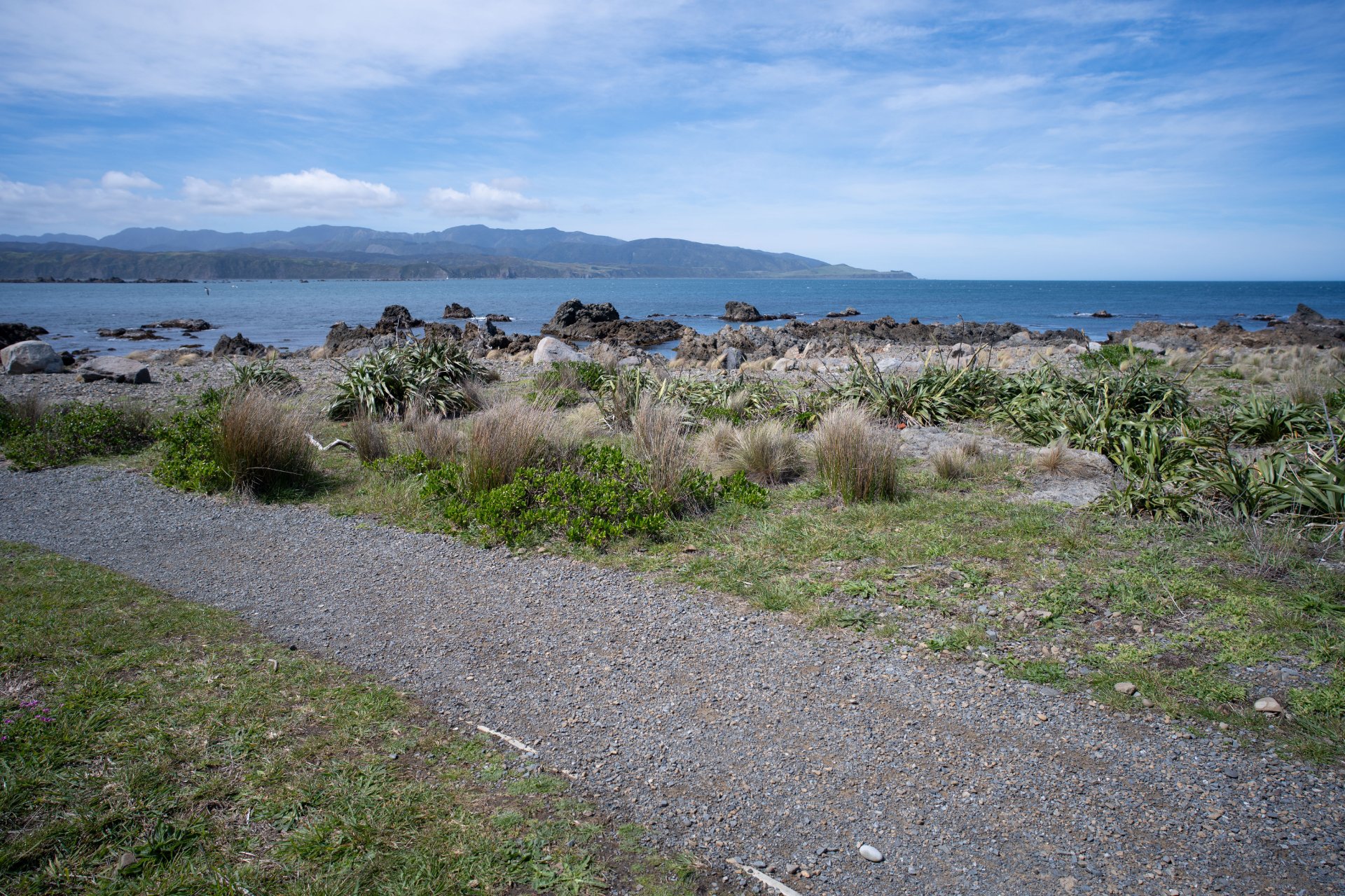 Te Raekaihau Point (‘the headland that eats the wind’) protrudes from Wellington’s south coast between Lyall Bay and Houghton Bay, and marks the boundary of the Taputeranga Marine Reserve. It’s a rugged, wild coastal environment with a walkway that’s well used by walkers, runners and cyclists.