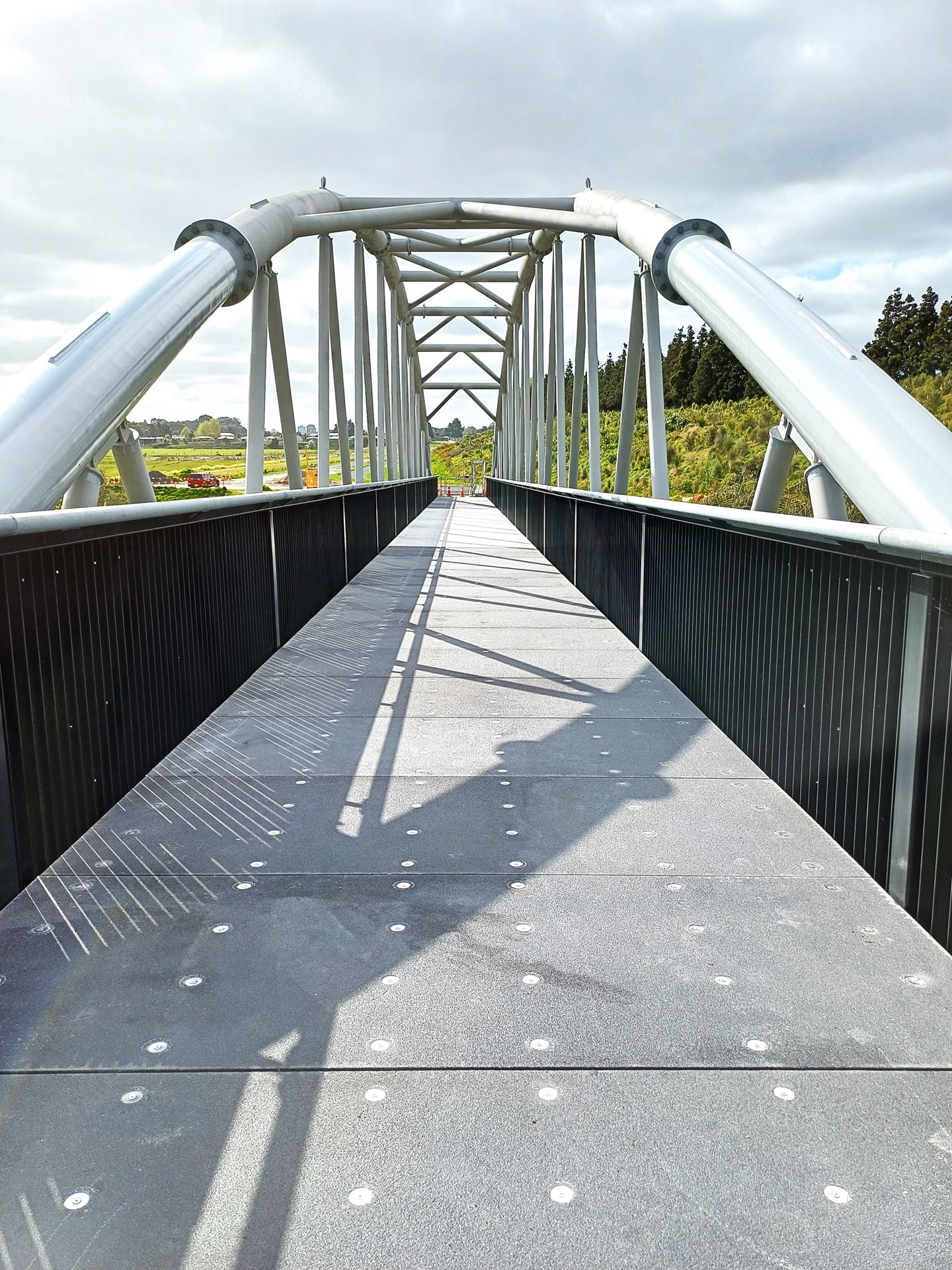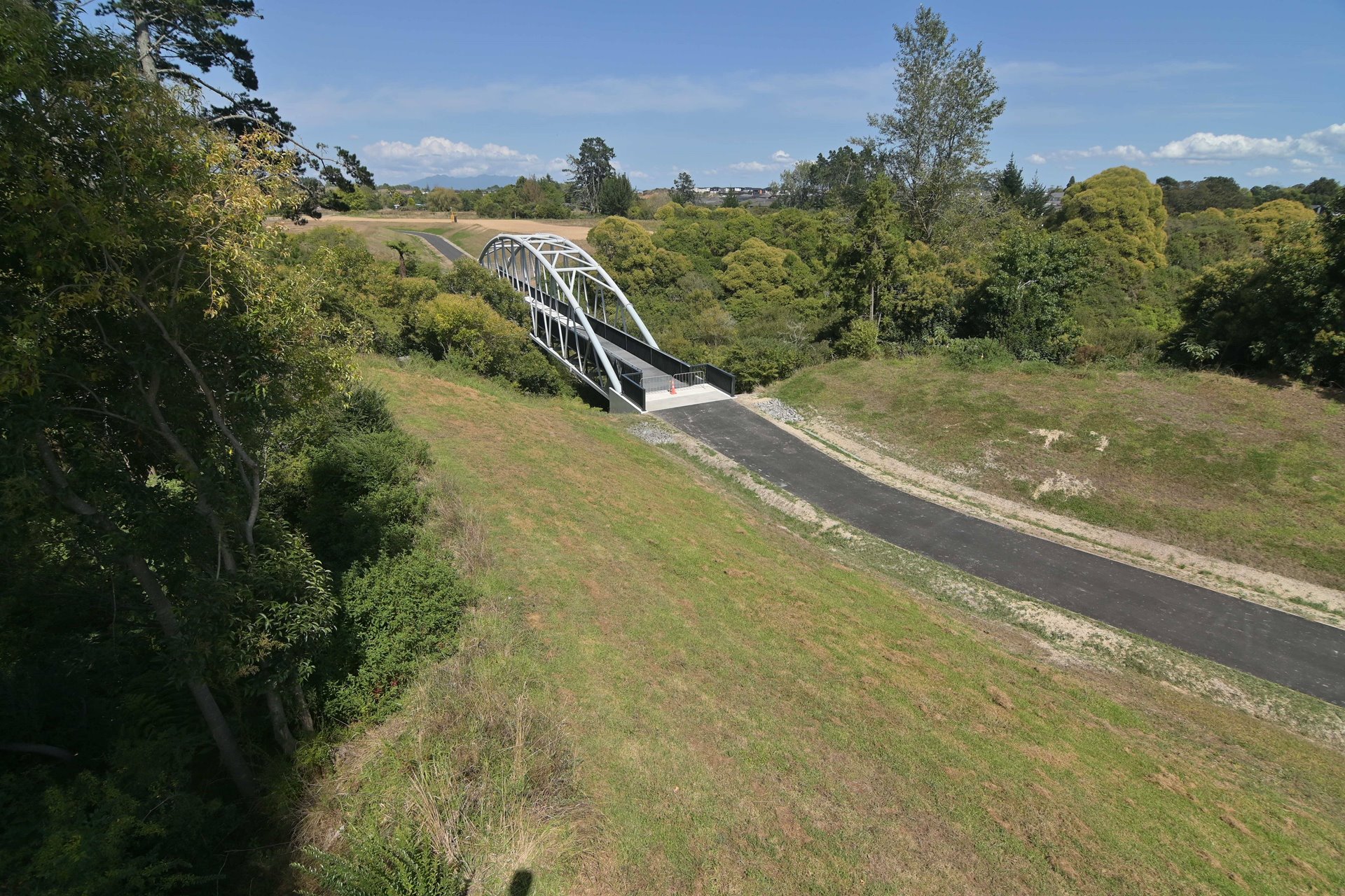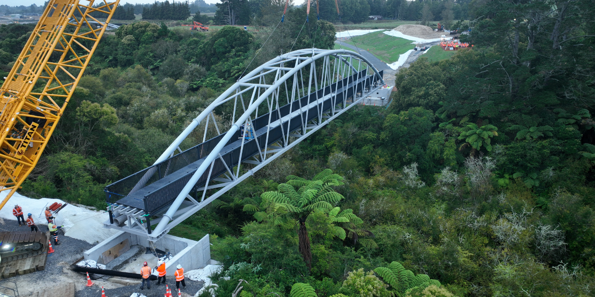 The project team were also able to ensure the design responded to what was most important to local iwi and hapū. The bridge design incorporates patterned balustrades designed by iwi artist Eugene Kara; the arrangement of the diagonals on the bridges’ arch into triangle shapes was also chosen to align with the pattern.
